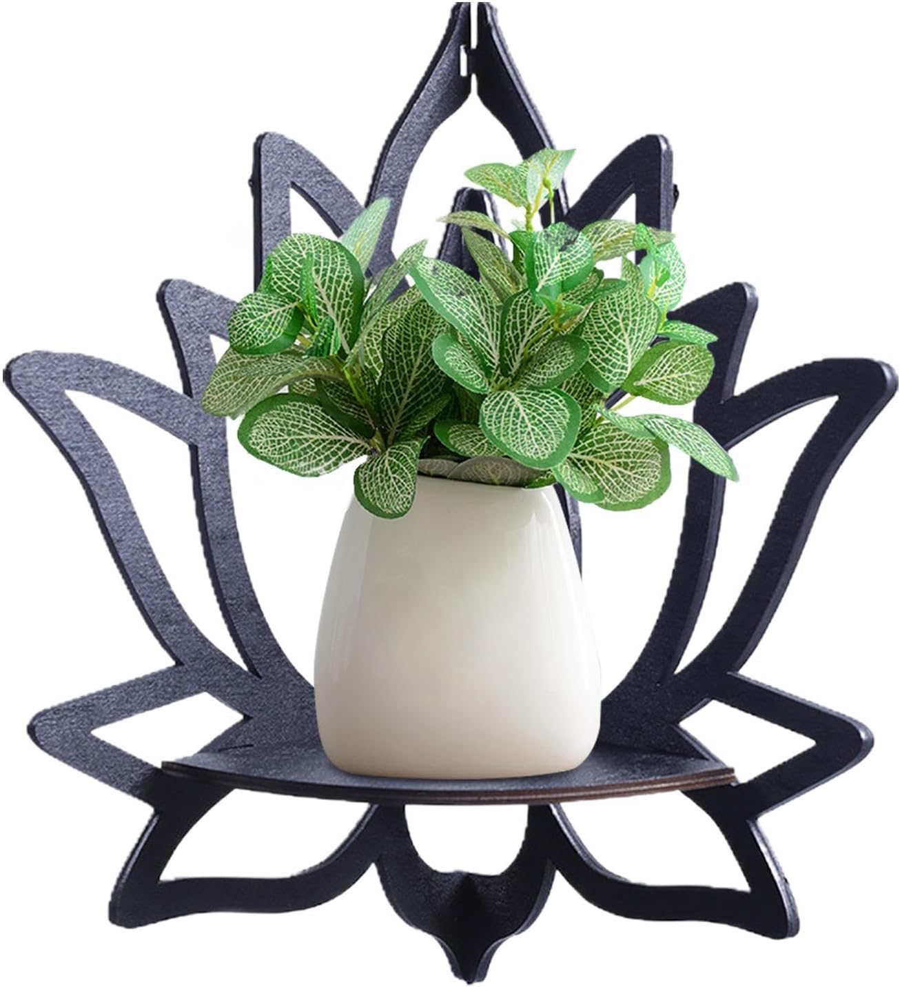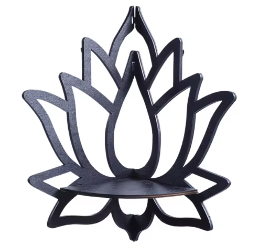 Polyvalente, cette étagère est parfaite pour mettre en valeur vos plantes 🌿, bougies, cadres photo 🖼️, cristaux ou petits objets décoratifs. Son style bohème inspiré du lotus, associé à la teinte noire élégante du bois, s’intègre avec harmonie dans une décoration moderne, ethnique ou zen.